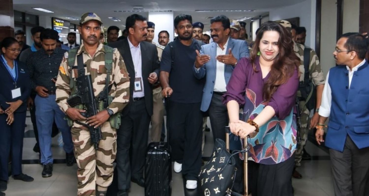Samson, who won the Man of the Tournament award, received a grand welcome at the airport. Hundreds of cricket fans gathered outside the airport to welcome him.